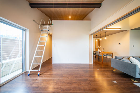 勾配天井リビングと豊富な収納、快適に暮らせる平屋の住まい。