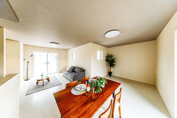 吹き抜けLDK20.8帖、3台駐車可能なゆとりの住まい。